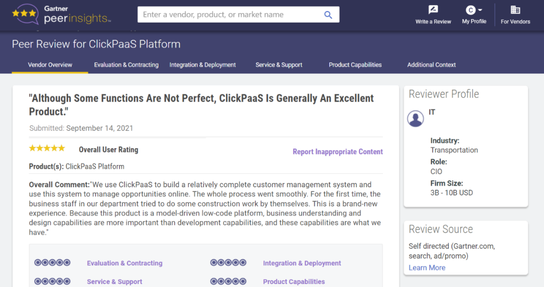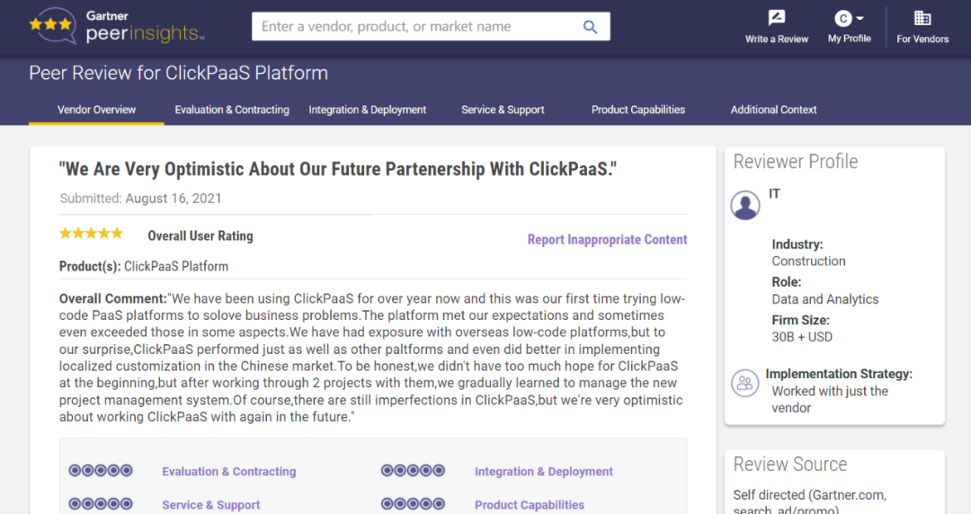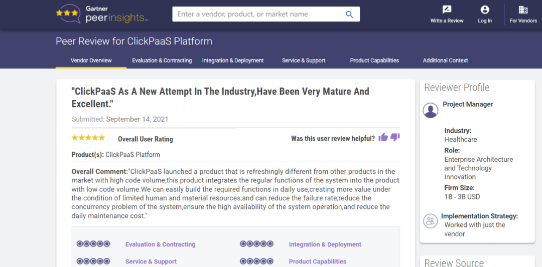 Tips:::::::::::::::【Peer Insights】——用户对企业IT产品和服务发布真实评价的平台。。。。。。目前已有355个市场,,,,,,,,255,000条经过验证的评价。。。。。。。。。。每一条评价Gartner会针对参评企业营收规模及参评人员信息做验证、、、、评价内容做多维核实。。。。。。。
